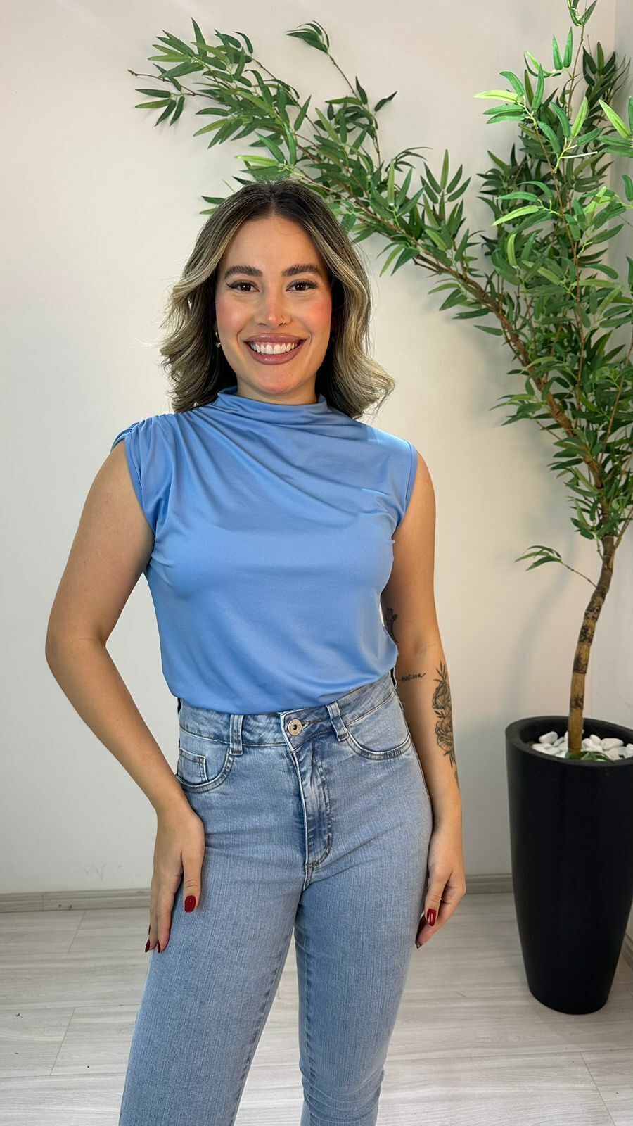 A Blusa Golinha é perfeita para quem deseja unir estilo e conforto. Confeccionada em poliamida, ela apresenta um detalhe de drapeado de um lado, que traz um charme extra à peça.