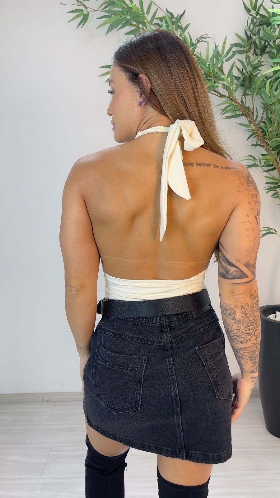 Este body em poliamida é versátil e funcional, ideal para quem busca conforto e estilo em uma única peça. Possui alças funcionais que permitem diversas amarrações, adaptando-se ao seu corpo e ao seu look.