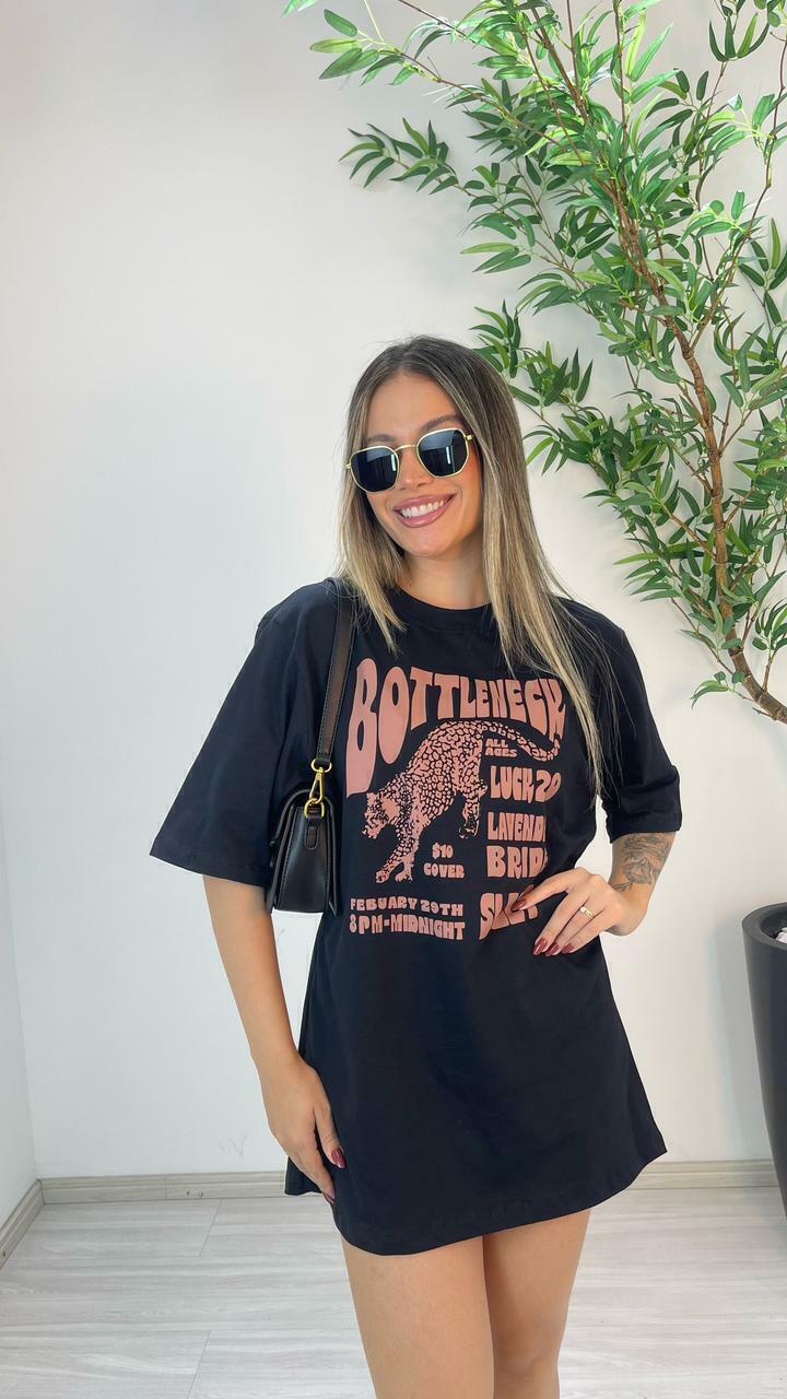 Camiseta de algodão, modelo bem soltinha, super confortável. Estampa de concha e escrita Palmbeach