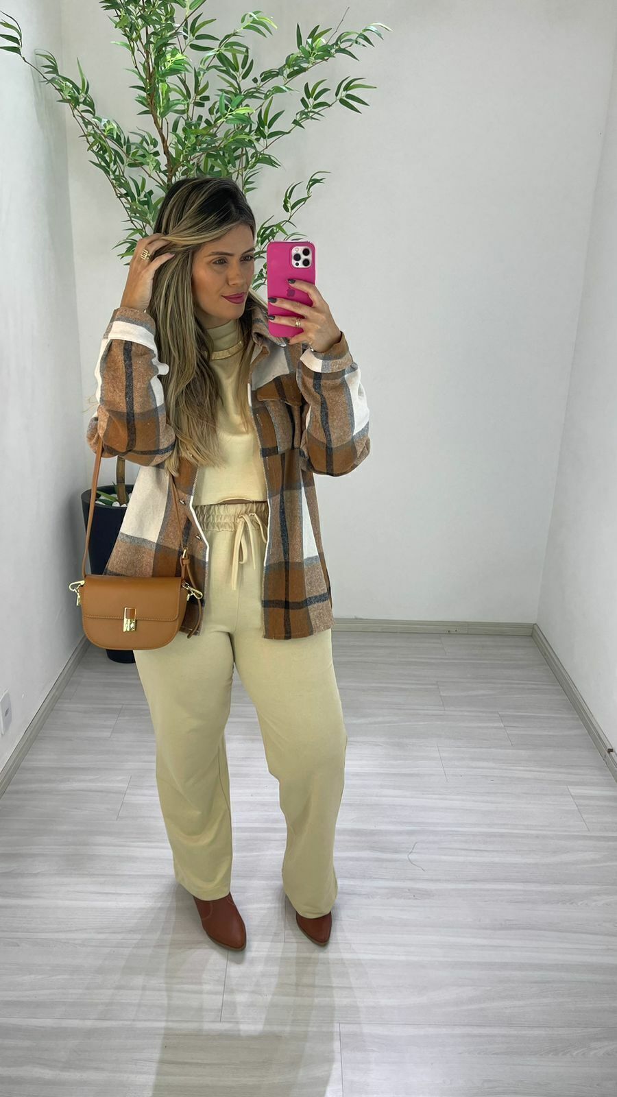 Conjunto em tecido de moletinho, calça modelo pantalona, com elástico na cintura, cós alto com detalhe de amarração fake na frente , bolso faca na lateral e bolso atrás. Cropped manga e gola redonda, deixa o look chic e sofisticado. Perfeito para levar em viagens ou para usar no dia dia.