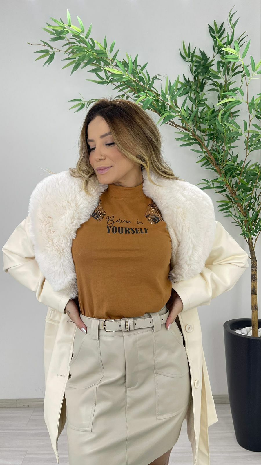 T-SHIRT BRILHO ONÇA CARAMELO