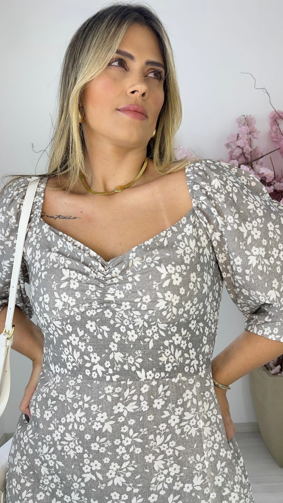 Vestido Midi com manga 3/4. detalhe em lastex nas costas , não possui bojo , bem estruturado com fenda. franzido no busto, valorizando o decote