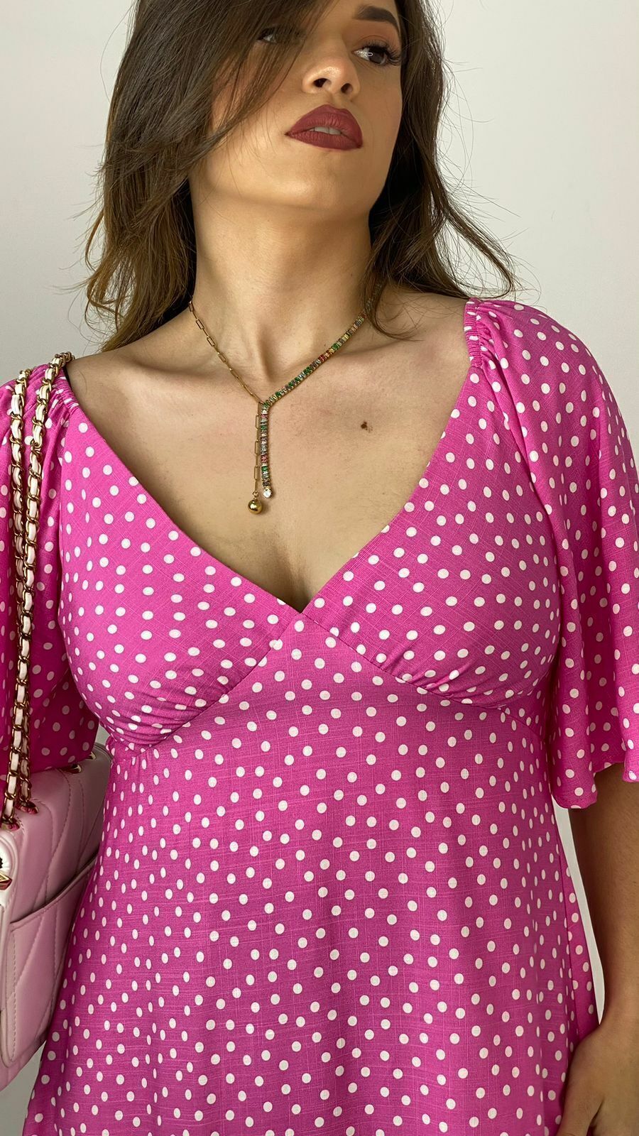 Vestido no modelo mais curto , decote em V no busto , bem fluído , confortável , possui lastex nas costas .